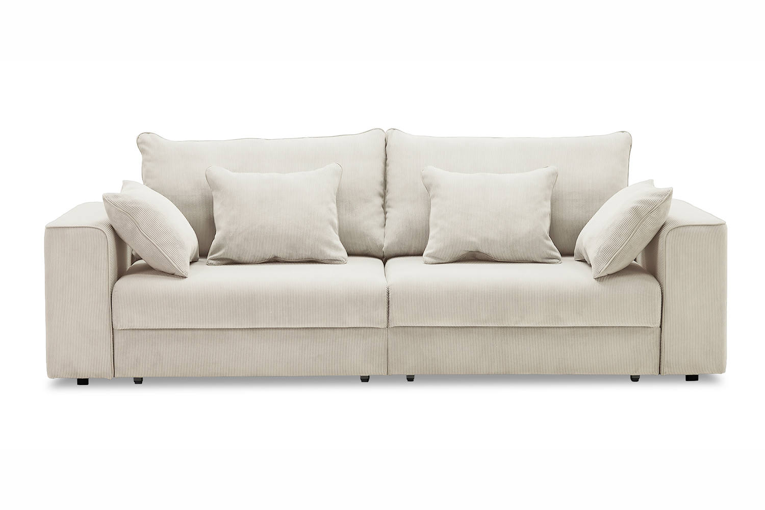 Диван выполнен в современном стиле, который будет гармонично смотреться в любом интерьере. Обивка из велюра c вертикальной текстурой актуального серого оттенка приятна на ощупь и легко чистится.